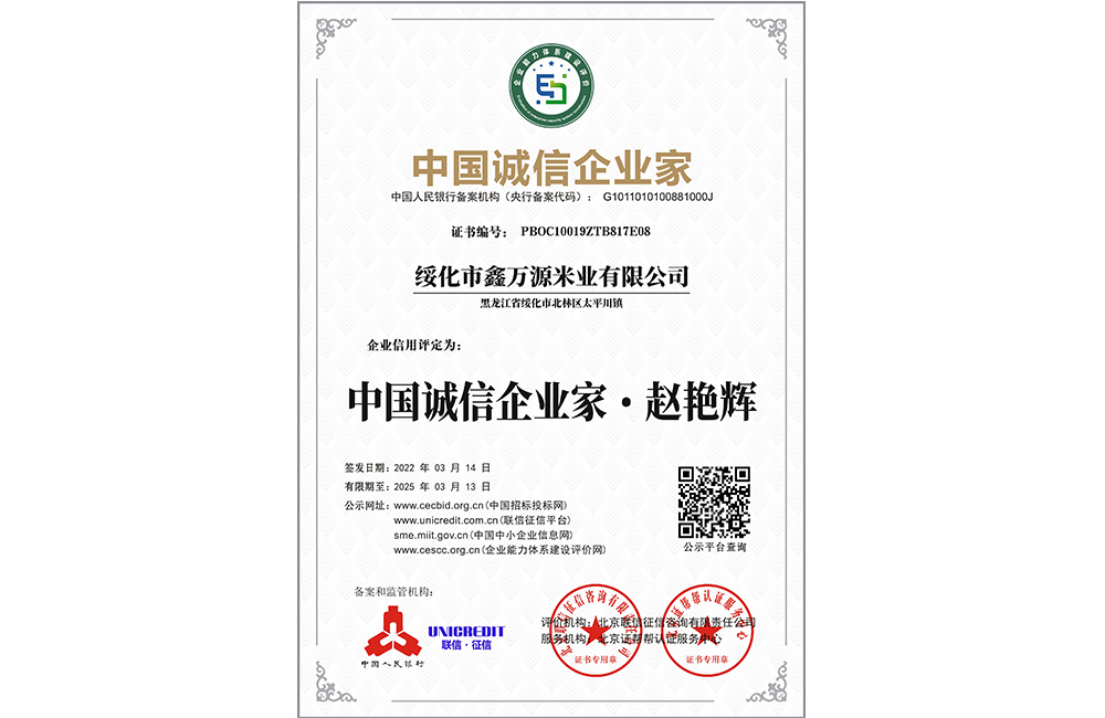 走進我們 ABOUT US 您現在的位置:網站首頁 > 走進我們 > 資質榮譽 公司簡介 COMPANY PROFILE 領導致辭 CORPORATE CULTURE 資質榮譽 HONORS 企業(yè)文化 HONORS 中國誠信企業(yè)家:趙艷輝 黑龍江省示范糧油示范加工企業(yè) 鑫萬源米業(yè)兩化融合管理體系評定證書 綏化市大學生實習實訓基地 農業(yè)產業(yè)化市級重點龍頭企業(yè) “鄉(xiāng)村振興,扶危助困”活動榮譽證書 共35條記錄 當前為第6頁/共6頁上一頁123456下一頁